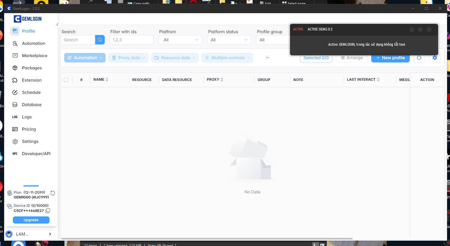 ACTIVE GEMLOGIN 4.0.1 MỚI NHẤT 1 MÁY