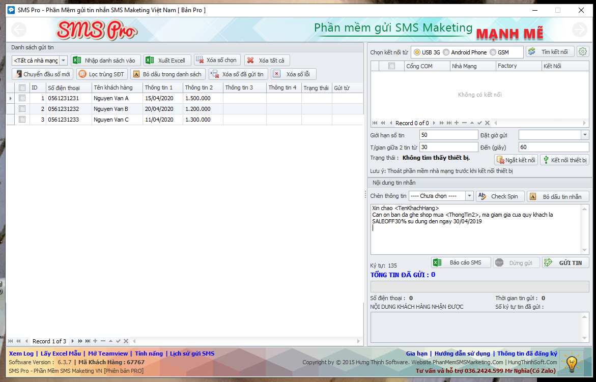 SMS PRO - Phần mềm GỬI TIN NHẮN SMS