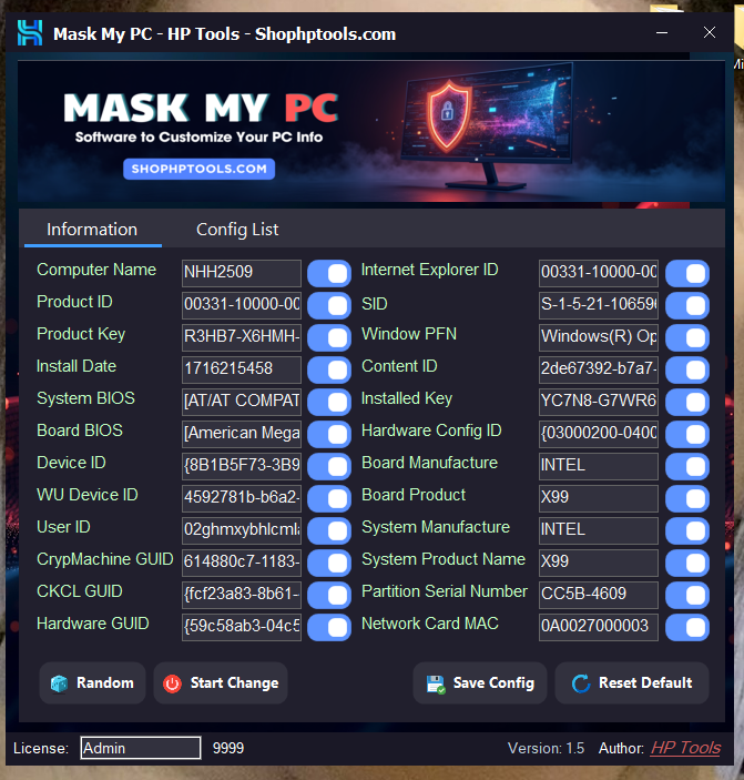 Mask My PC [vô hạn máy] - Tool đổi thông tin máy tính
